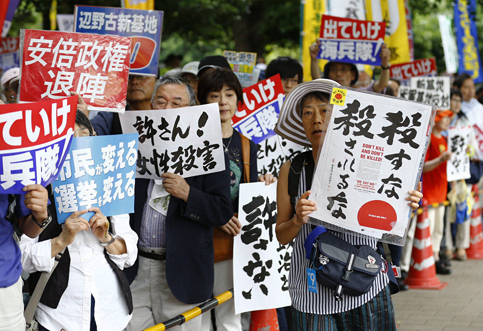 © AP Photo / Shizuo KambayashiПротесты против дислокации военных баз США в Японии. 2016 год
