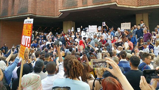 ©Акция протеста против здания управы лондонского района Кенсингтон и Челси. 16 июня 2017